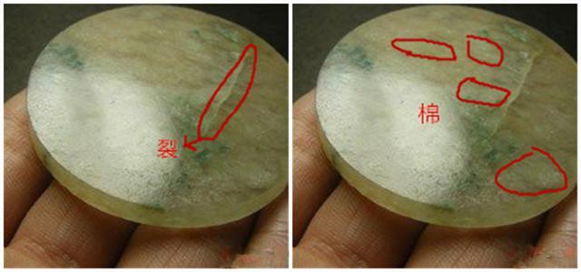 三、怎样区别翡翠的裂纹与棉?