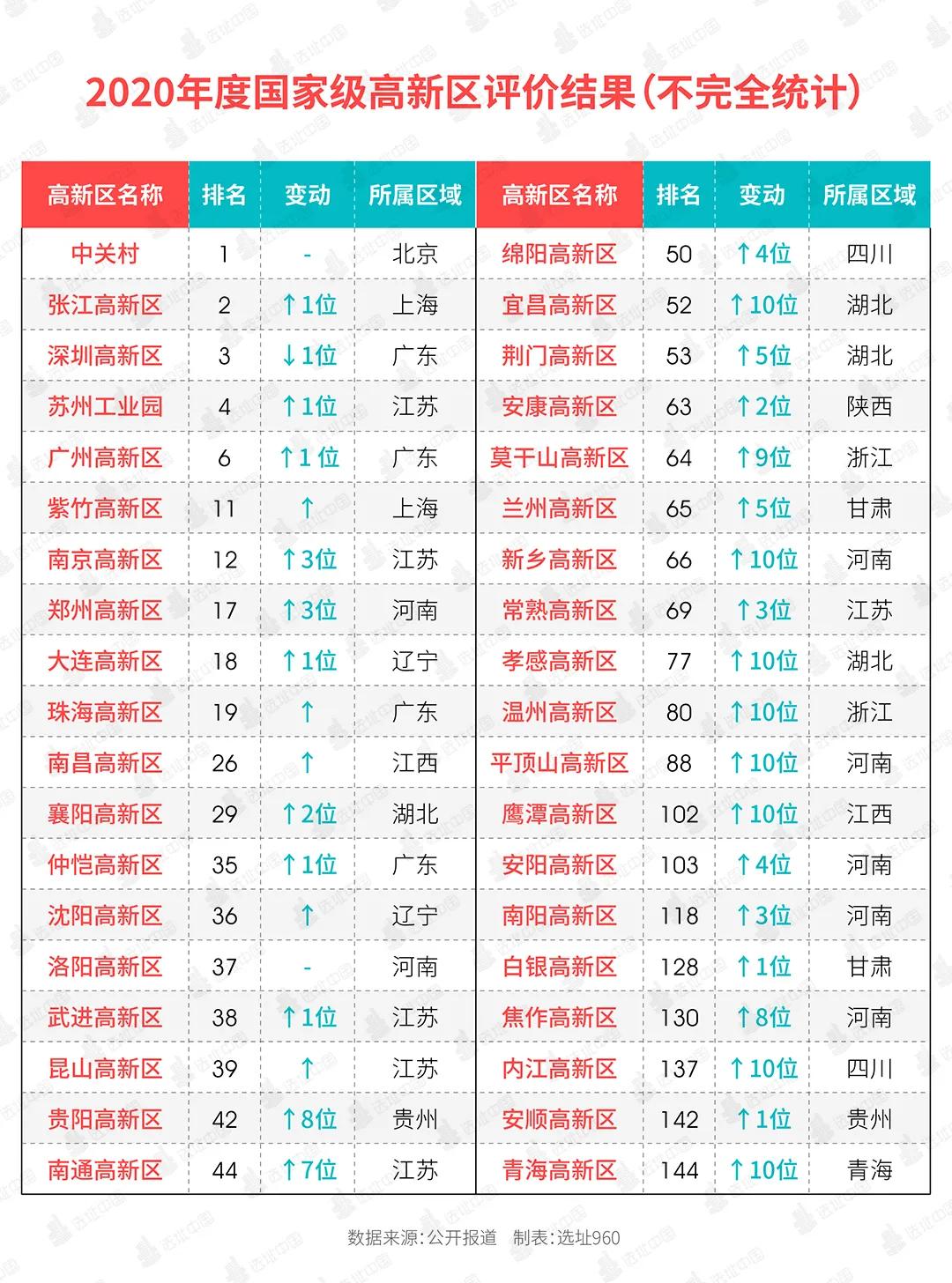 基于公开报道,以下整理了2020年度国家级高新区评价综合排名(不完全统计),为企业选址提供参考。