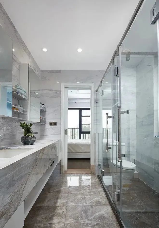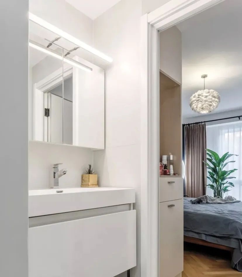 不管是卧室卫生间还是客厅的卫生间,都可以做一个阻挡异味快速蔓延的玄关。