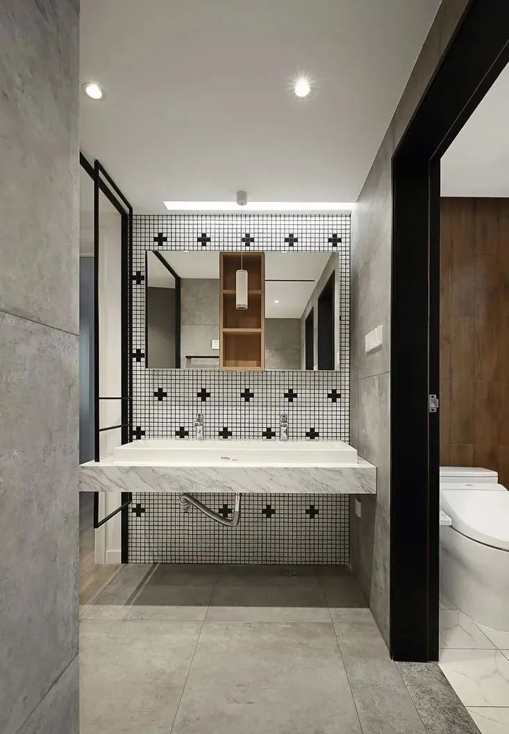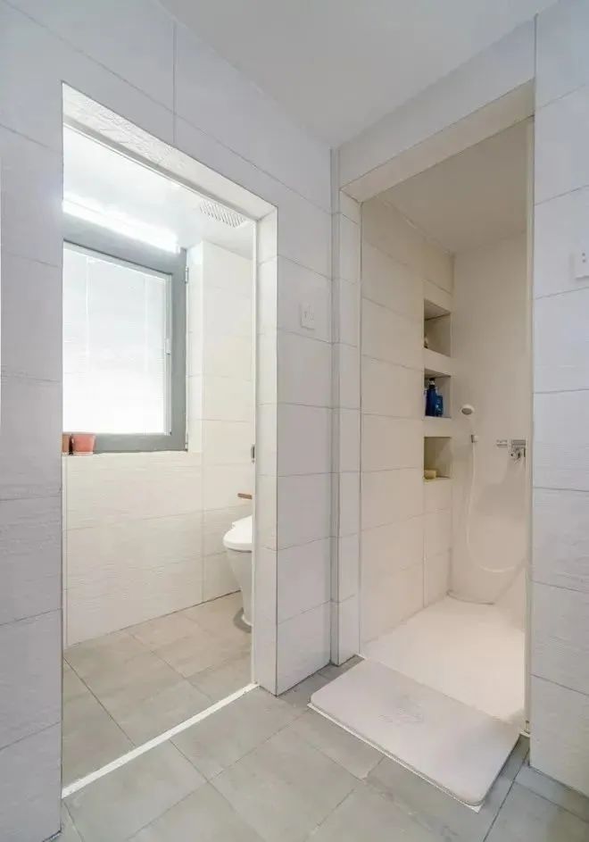 参考日式卫生间,把马桶、淋浴区和洗手池分割成3块。家人分开使用互不打扰,还能有效防止潮气进入房间。