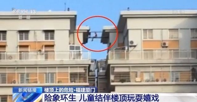 孩子们结伴在楼顶冒险嬉闹的画面已经不止一次被拍摄到,危险性不言而喻。下面这两段视频也让人吓出了一身冷汗。