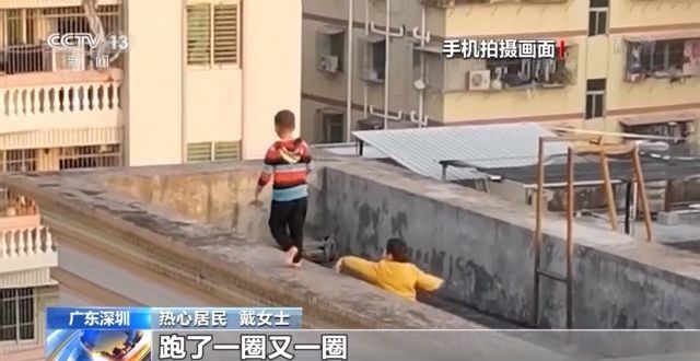 目击者 戴女士: 有一个小孩子追着边沿站着的小孩子这样跑,跑了一圈又一圈,他的脚下是8楼这么高的楼顶,我看了都打冷颤。