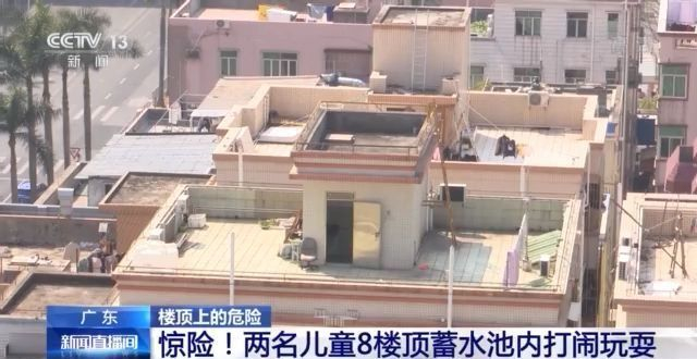 近日,在广东深圳宝安区一居民楼楼顶发生了惊险一幕,有两名5岁儿童在楼顶的蓄水池内打闹玩耍,不仅如此,其中一人还在蓄水池边沿处来回跑动,十分危险。
