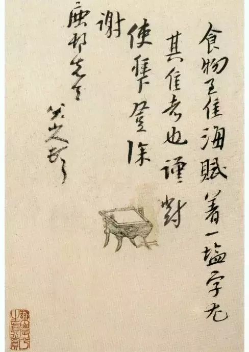 在这一基础上,八大山人对中锋有各种灵活的运用。对中锋的坚持,必然会尽量避开折笔,而以转笔为中心。他对转笔的控制十分出色,线条匀整而富有韧性,特别是右上角弯折处的弧线,不妨看做是前人所谓『折钗股』的注脚。