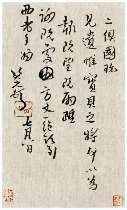 八大山人书法作品中线条粗细始终比较均匀,线条推移远未达到怀素狂草的速度,线条内部运动与怀素相比,也比较单纯。就线条质地而言,八大山人在节奏的丰富性和气势上有所损失,但换取了以彻底的中锋所铸造出的坚实的基础,这对于他的绘画创作具有极为重要的意义。