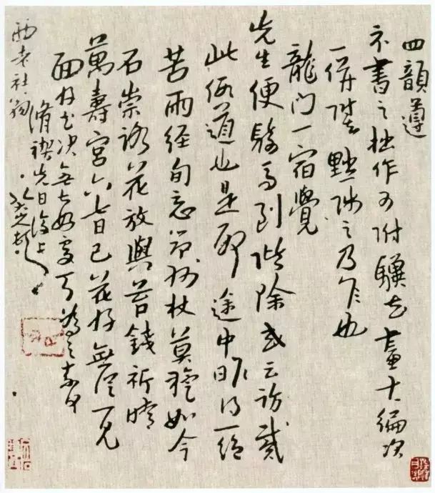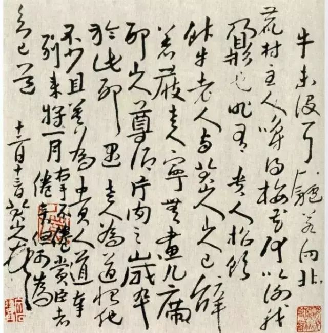 八大的笔法看起来很容易,但异常重要,真正能够掌握的人也非常少。这种笔法意味着线条改变方向时出色的控制能力。在这一基础上,才有可能随心所欲地左右笔锋的运行。