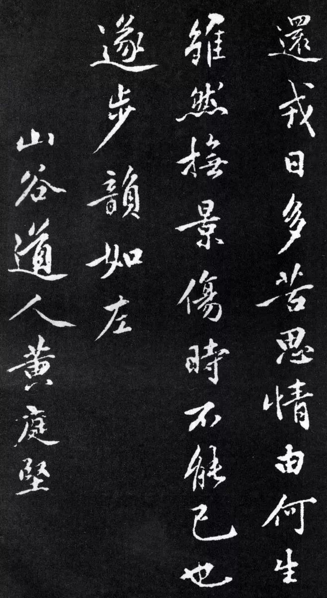 黄庭坚草书风格的成熟,还得益于他长期对摩崖石刻《瘗鹤铭》的揣摩师习。《瘗鹤铭》是原刻于镇江焦山西麓崖壁上的楷书书法,相传作者为南朝梁的书法家陶弘景,被历代书家推为“大字之祖”。黄庭坚引《瘗鹤铭》入草,雄强逸荡,境界为之一新,形成了自己长枪大戟、绵劲迟涩的独特书风。