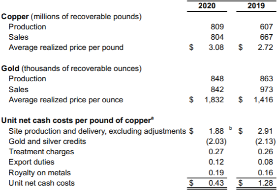 格拉斯伯格铜金矿(Grasberg)位于印度尼西亚,在1990到2019年间生产了约1500万吨铜和1800吨金,常年占据全球金矿榜首和铜矿前十,近期由于露天转井下开采,产量有所下降,2020年生产了54.1吨金和36.7万吨铜。该矿经历了国有化的过程,目前由印尼当局和自由港麦克莫兰(Freeport McMoran)合资,前者占股51.24%,后者占股48.76%并负责运营。