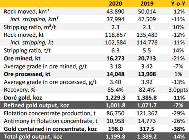 为了解全球主要金矿的基本情况,《世界矿业》研究团队对全球40座特大型金矿进行了统计分析。除穆龙套金矿外,其余上榜矿山所属企业基本为上市公司,截止到2月18日,多数已披露2020年产量初步结果。本文按产量排名,盘点了全球十大金矿,并进行简单介绍。