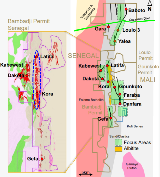 洛洛贡科托金矿为绿岩带中的造山型金矿,包括洛洛和贡科托两个矿区,露天开采,拥有资源量约400吨。