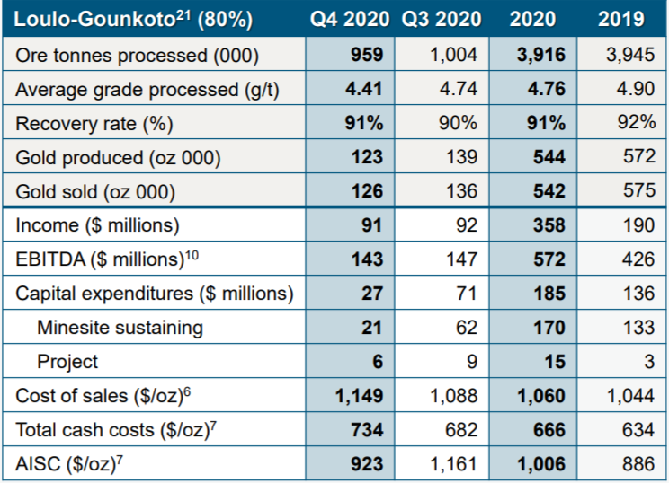 洛洛贡科托金矿(Loulo-Gounkoto)位于马里,由巴里克(80%)和马里政府(20%)合资,巴里克负责运营。