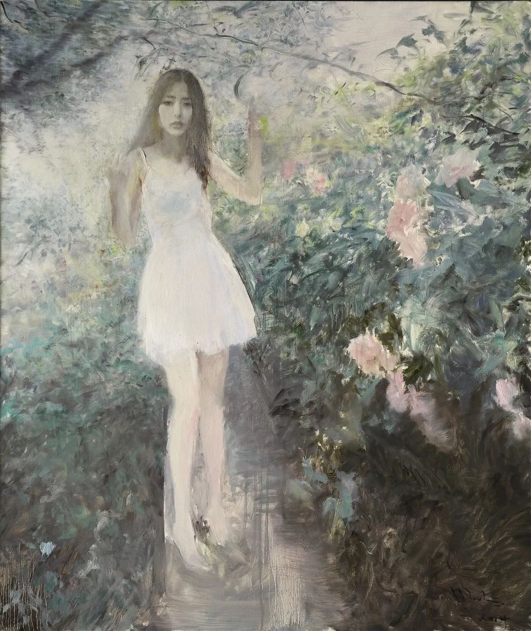 何多苓,《花前》,布面油画,2014