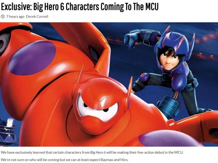 The Disinsider 表示他们并不确定以真人形象加入漫威电影的会是谁,但至少可以期待一下大白和小宏。