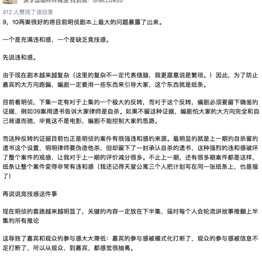 这当然只是一个小切面,但这些明侦寻常流程之外的板块时长的增加、内容的丰富,也能反映出节目在寻常剧本创作之外,所需要面对的问题。