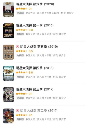 从2016年第一季以《男团鲜肉的战争》惊喜登场,既在人物设定上还原了标准的idol组合主唱、舞蹈、rap、颜值各类担当,也讨论到娱乐圈中整容、抄袭、偶像恋情等问题;到第二季《周五见》凭借案件缜密逻辑和关注到狗仔爆料、网络暴力等热点话题树立好口碑;第三季《NZND之岁月无情》讲述成团十年后的变迁,进一步巩固了IP效应和综艺效果,但也开始暴露推理疲软的问题;而第四季《NZND之回到未红时》、第五季《NZND破冰谜案》中除了何撒白外老嘉宾缺位、整体剧情乏力。
