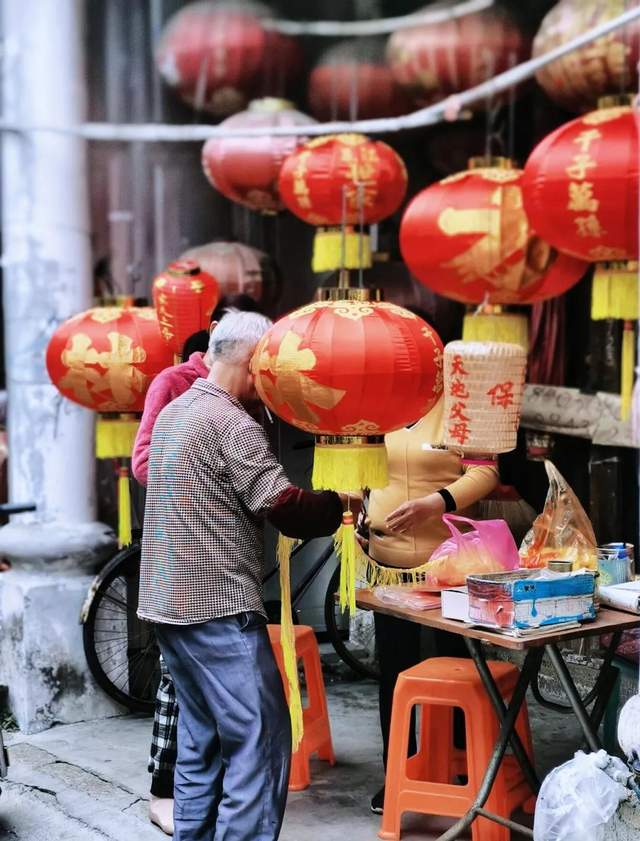 这里的灯笼分为好几十种,鹅蛋形的叫鹅蛋灯笼、上下收口的叫大柿灯笼、挂在祠堂庙口的叫大何灯笼,还有八寸灯、大布灯、小柿灯等,功用和形状各有不同,来村里的游人都能选到心头好。