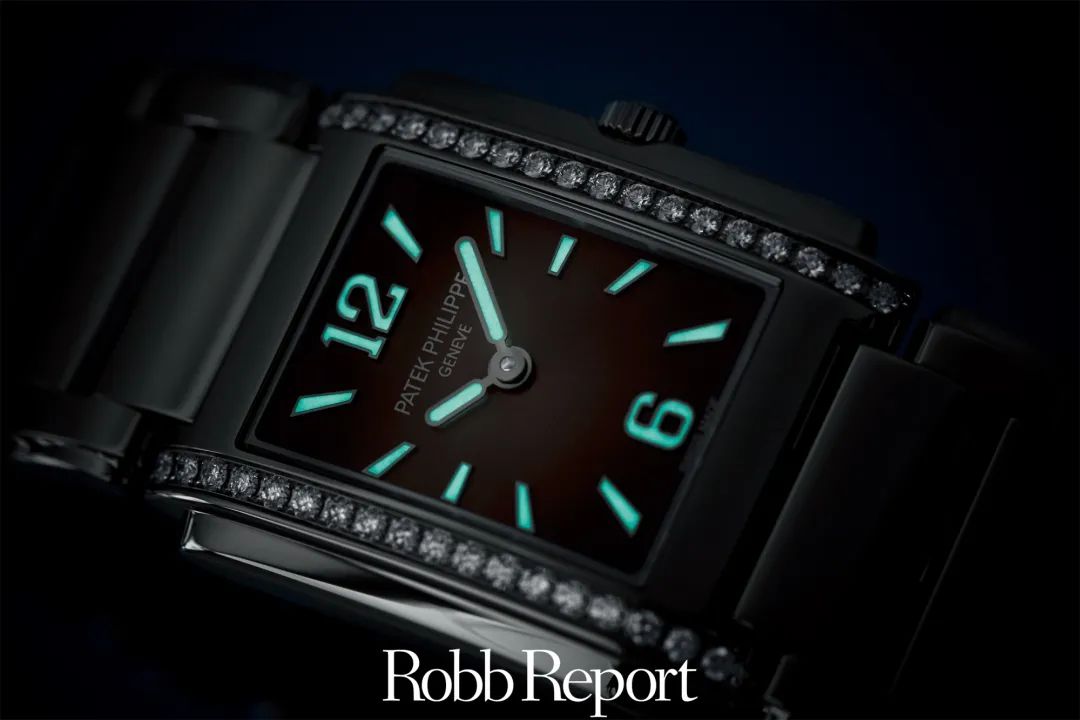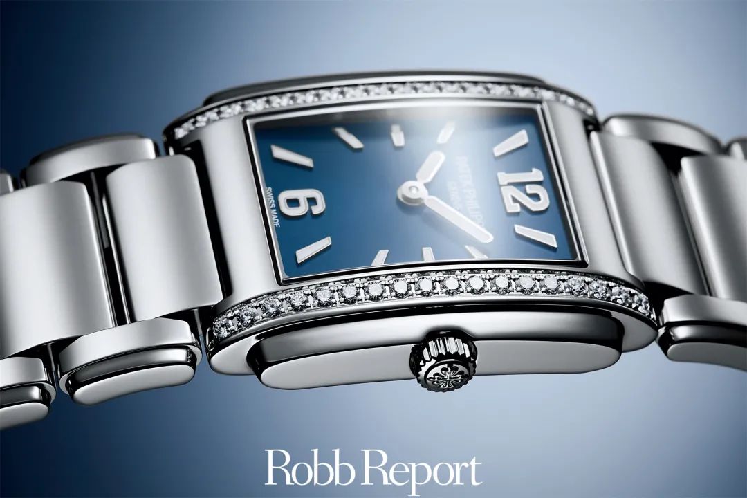 钻石镶嵌是女式腕表装饰艺术中的重要工艺,钻石镶嵌技艺的好坏直接影响女式腕表外观的色彩。别出心裁的双层矩形表壳镶嵌两排(每排18颗)顶级威塞尔顿钻石(约0.42克拉),彰显精准工艺。表冠饰有Calatrava十字星图案。表链搭配一枚折叠式表扣。每个部件均由手工整饰处理并全面抛光。E15石英机芯沿承百达翡丽机械机芯的精湛工艺。新款Ref.4910/1200A-001与Ref.4910/1200A-010采用阿拉伯字块,取代此前搭配罗马字块的Ref.4910/10A-001、Ref.4910/10A-010、Ref.4910/10A-011以及Ref.4910/10A-012表款。