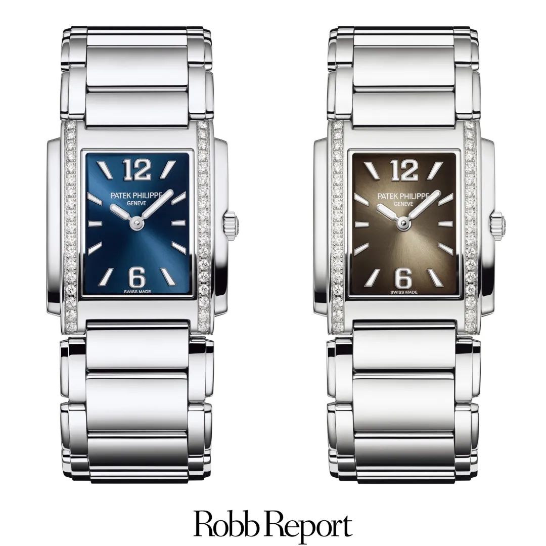 2020年,百达翡丽为Twenty~4系列再添新成员,对中号(25.1毫米×30毫米)不锈钢石英腕表进行重新设计。新推出的两款全新腕表中,罗马字块被白金立体阿拉伯字块“12”和“6”取代,先前的钻石时标也更换为白金立体梯形时标。这也是对1999年款Twenty~4腕表第一次进行时标方面的革新。两款全新腕表分别采用了蓝色日辉纹表盘以及由内而外呈黑色渐变效果的灰色日辉纹表盘。其白金立体字块、时标以及白金巴顿式指针,均覆以荧光涂层,大面积涂层保证了夜间清晰易读。表盘设计中,以精细的日辉纹自中心向四周辐射,营造出光影变幻,别具精致格调与动感活力。此次革新,百达翡丽希望为Twenty~4的优雅之外带来便捷的实用性。百达翡丽将钻标替换成白金立体梯形时标的同时,为其覆盖了大面积夜光涂料,方便佩戴者在夜晚读取时间。