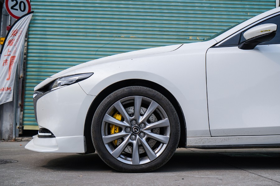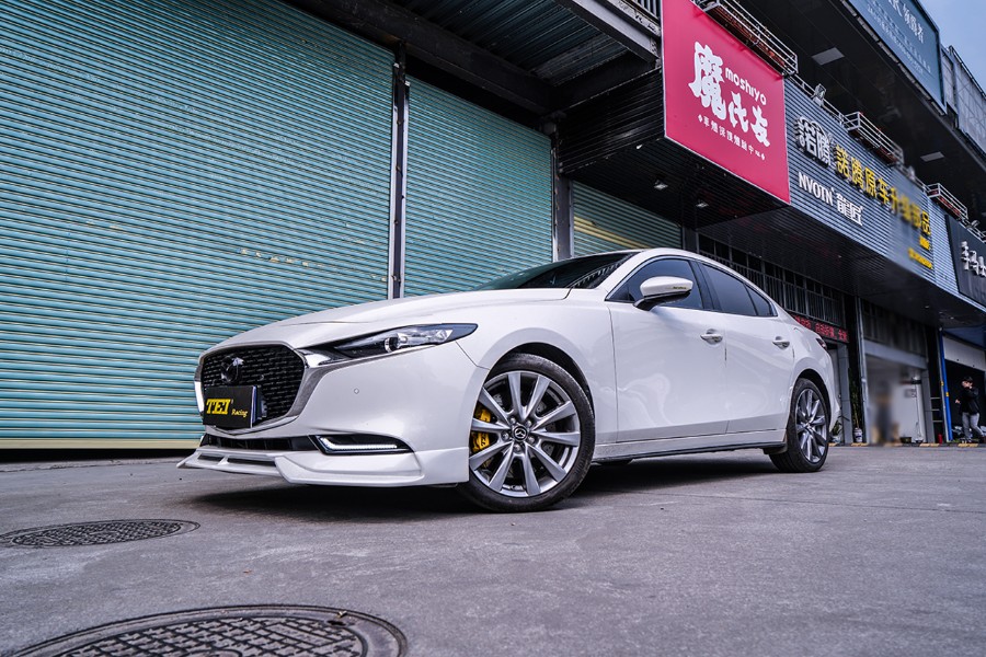 车友这辆白色的马自达昂克赛拉需要升级改装刹车,在车友的建议下,我们给车友推荐升级TEI Racing P40NS刹车卡钳套件。而且黄色的卡钳和白色的车身搭配,看起来很有feel......