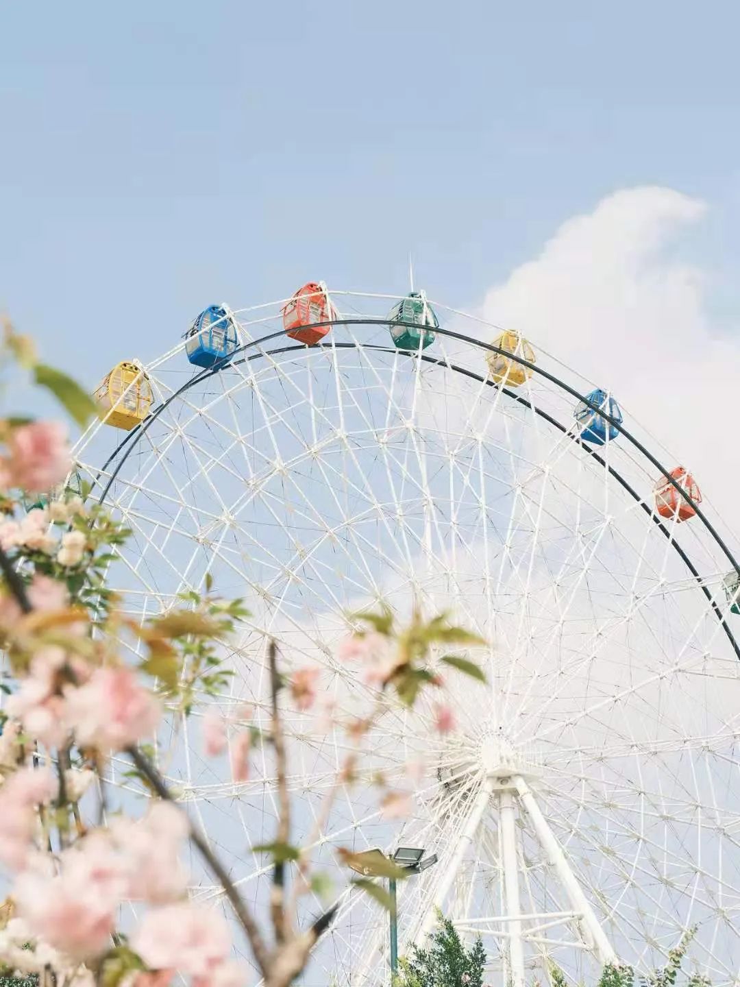 幸福摩天轮就坐落在樱花山上,山下还有一条2公里的樱花大道,踩着小石子一路走过,感受秒速5厘米的落樱,空气里都是甜甜的味道。