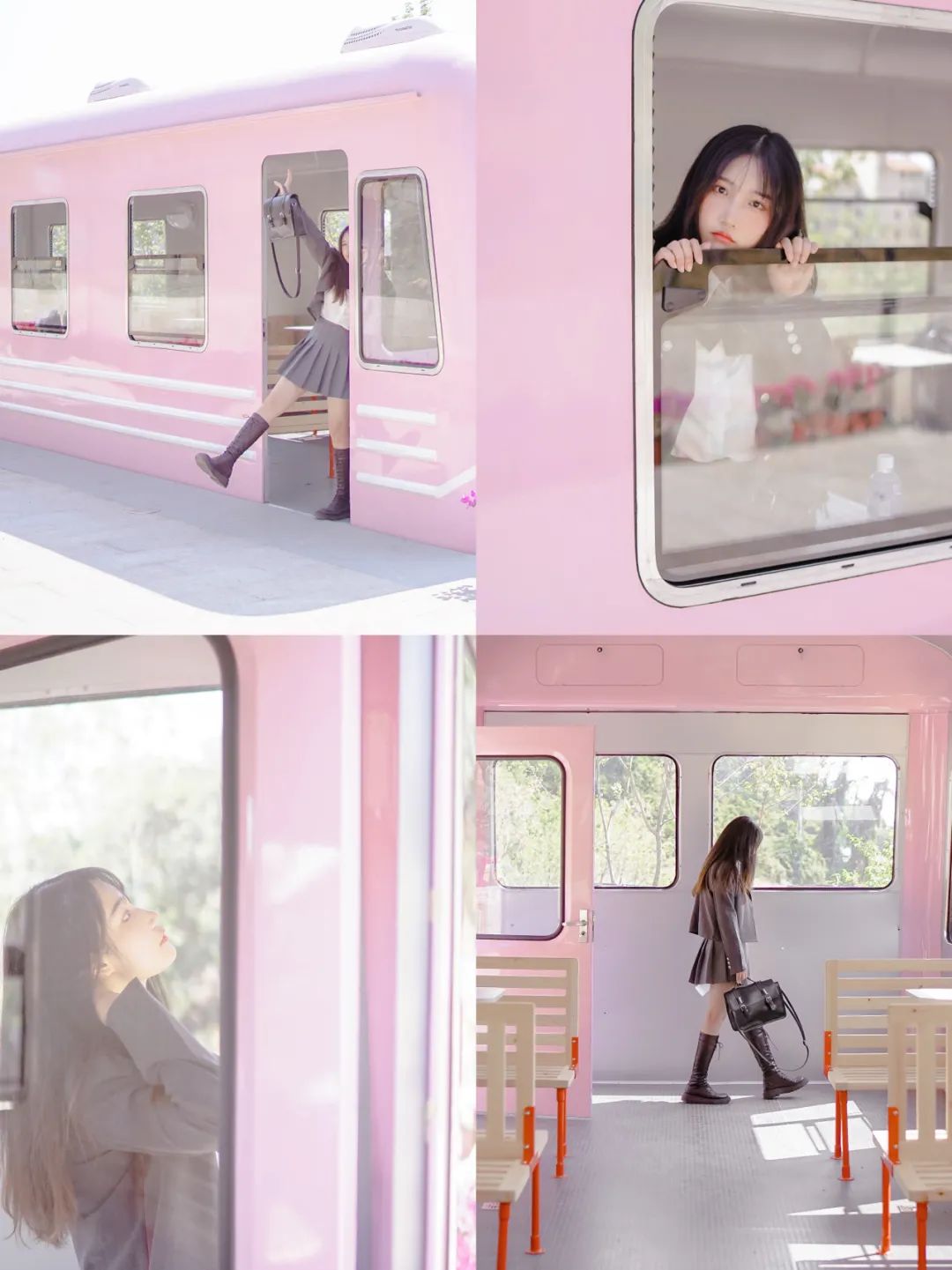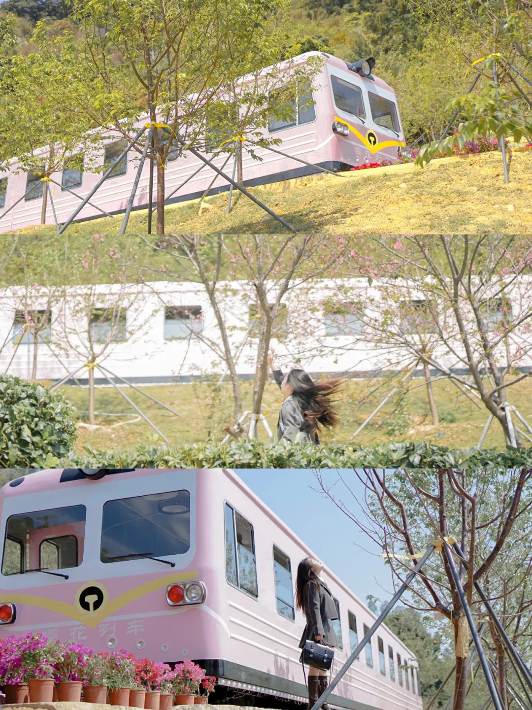 樱花树下,赏花拍照,穿上JK制服来拍照,樱花列车自带日系滤镜,随便往那一站,妥妥的日剧女主就是你。