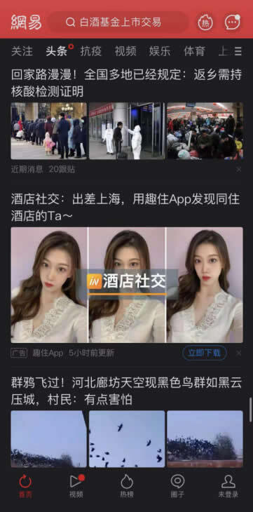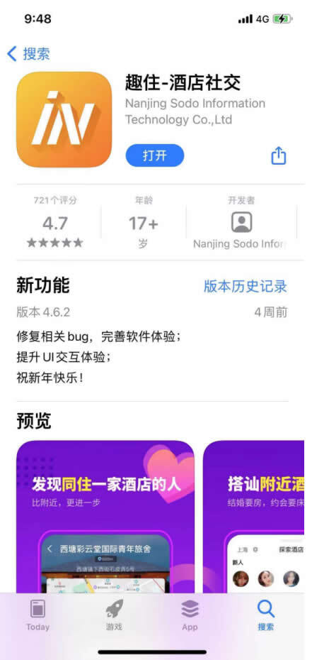直到在网易新闻里看到这条通告,抱着尝试的心态,从应用市场下载并注册了这款酒店社交软件,发现里面的产品功能和界面跟面具非常相似,不禁猜想是否面具的团队借壳上架?