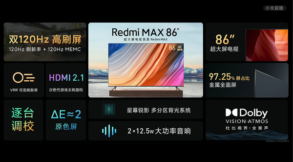 2月25日晚,Redmi品牌举办新品发布会,正式推出Redmi MAX 86"大屏电视。