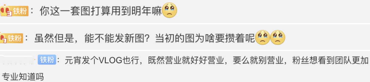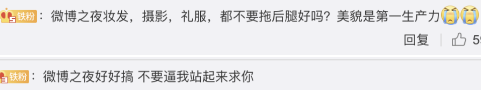 结果被嫌弃了。有粉丝在工作室留言区质问“这一套图打算用到明年吗?”粉丝想看到更专业的团队。” 还有粉丝虽然不满这次的营业,但并没有动怒,而是让工作室搞好wb之夜,不要在造型上拖后腿。