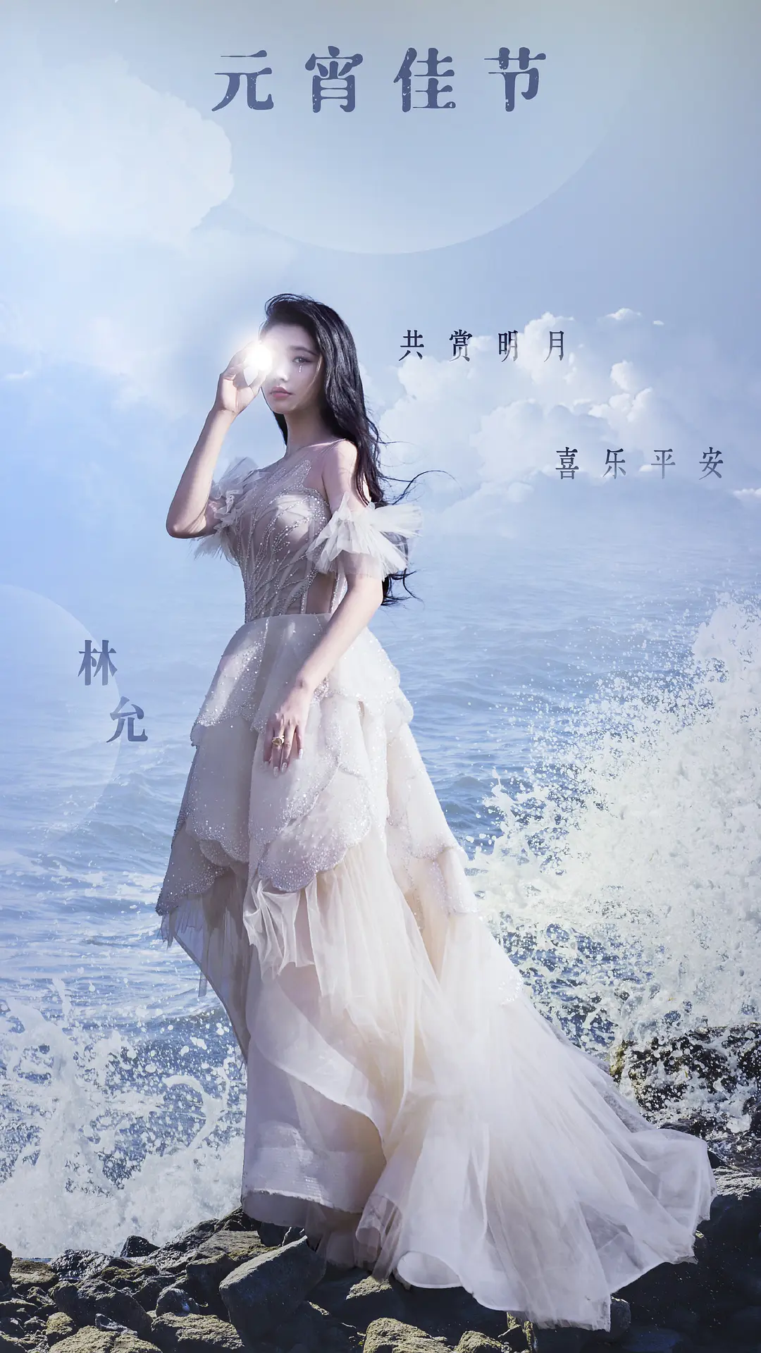林允的祝福图属于冷色调,站在大海边的她,身穿白色blingbling连衣裙,像极了游上岸送祝福的美人鱼。这组图被不少人喜欢,并表示林允的品味提升了不少。但也有人表示美是美,但这照是去年的,就不能用新图吗?和杨幂的遭遇如出一辙。