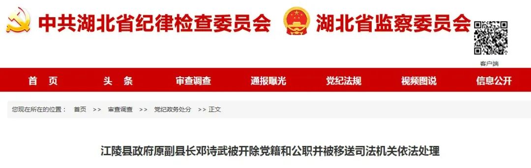 1、江陵县政府原副县长邓诗武被开除党籍和公职并被移送司法机关依法处理