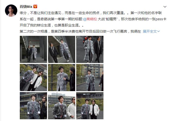 近日,《奇葩说》的选手肖骁在个人社交平台上发长文感谢了高晓松,感谢彼此的相知相遇,这亦师亦友的情谊真的让人羡慕了。在文中,肖骁还提到一句,“我俩都瘦了,这是多年不见唯一的变化”。