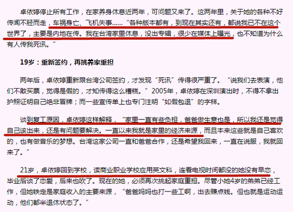 然而,名气带给她的不止是忙碌的工作,还给了处于考学阶段的她,相当大的压力。17岁时,卓依婷选择暂停工作,这也成为她事业的拐点,内地从此流传她去世的消息。她得知传闻时,恰逢父母经商失败,自己又无法放弃学业,未能及时到内地澄清。
