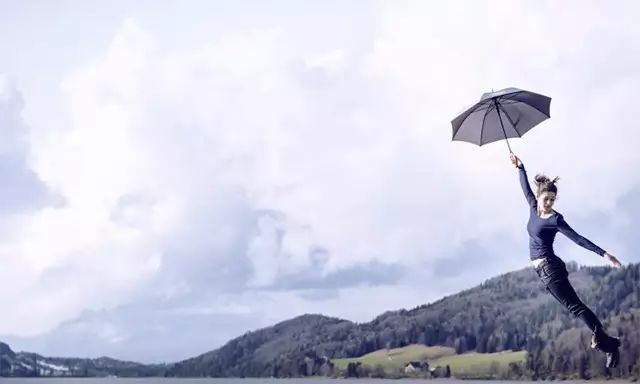 用雨伞也能玩出同样的效果,不过这对雨伞的质量有一定要求,最好在模特刚跳出的瞬间就抓拍,以免雨伞变形: