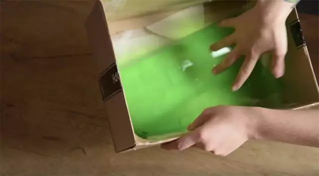 裁出镂空之后,把彩色滤纸贴在盒子底部: