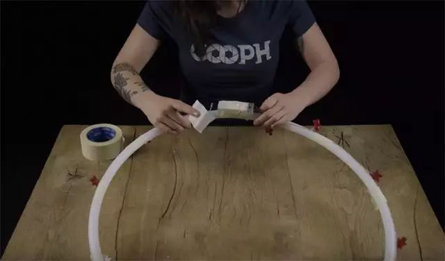 你需要把小彩灯缠在呼啦圈上,用胶布固定好: