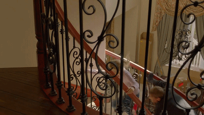 在商场的扶梯上走着走着,就掉了下去;