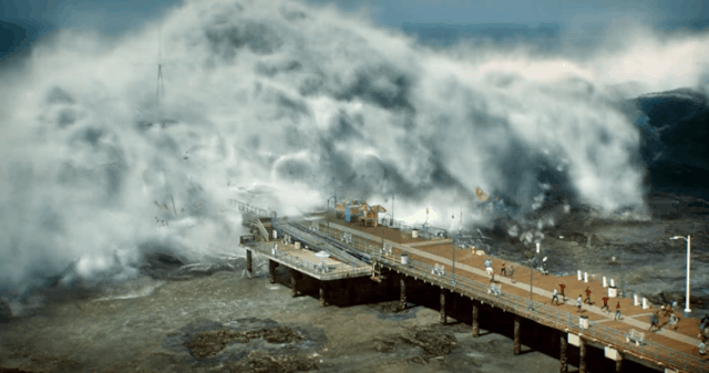 在户外游玩的时候,没有任何征兆地就遇到了海啸;