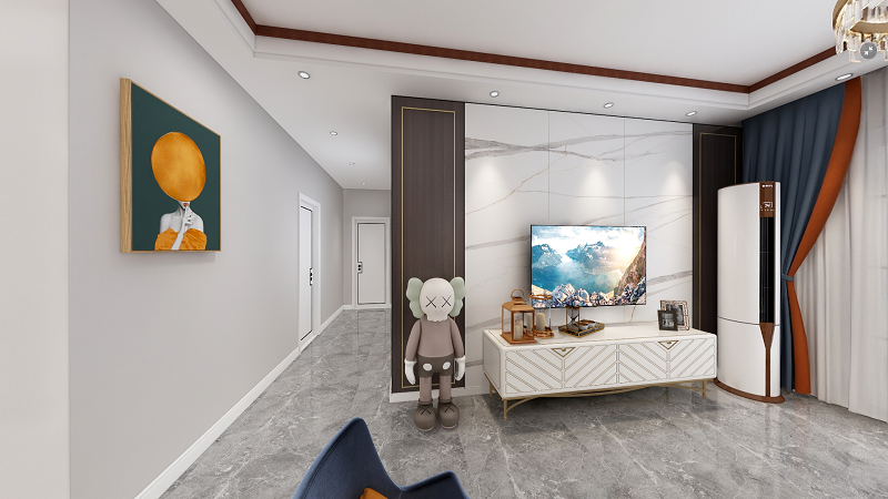 影视墙同样是采用瓷砖上墙装饰的,象牙白瓷砖带有浅灰色纹理,宛如一件天然的艺术品。很多业主喜欢用瓷砖装饰墙面,瓷砖上墙装饰性价比极高,寿命长易打扫,并且还非常美观,拥有非常多的优点,不知道怎么选择背景墙材料的业主可以参考一下。