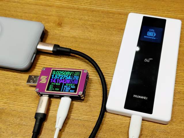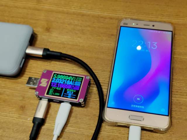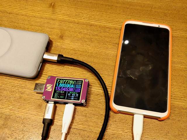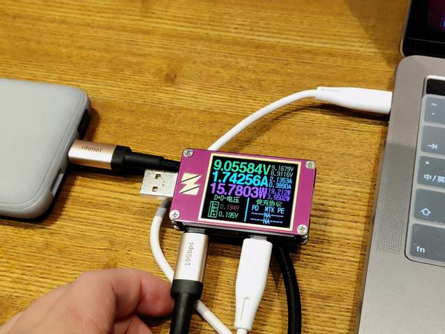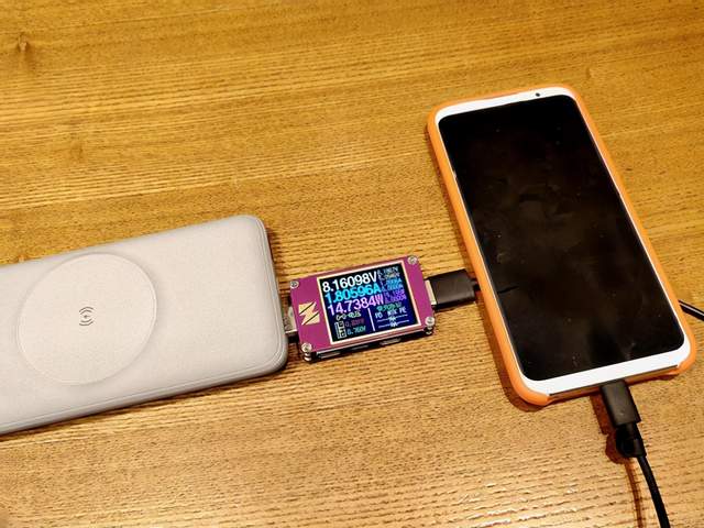 在USB-A接口的测试中可以发现,南卡无线充电宝POW3除了能实现接口标识的“QC”协议的快充外,还能实现华为的AFC和魅族16th的MTKPE的快充协议的支持,并且轻松能达到将近15W的功率输出。