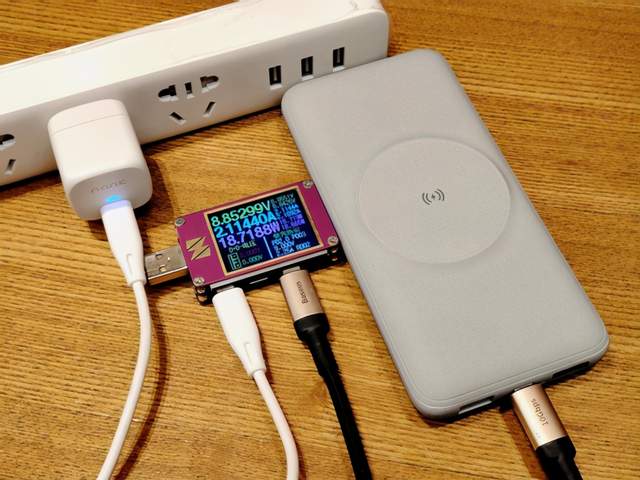 由于南卡无线充电宝POW3的Type-C接口是具有双向快充输入输出功能,配搭南卡充电头C1进行充电测试,完全实现南卡无线充电宝POW3的18W左右的高效率快速充电,更加方便充电宝的充电使用。