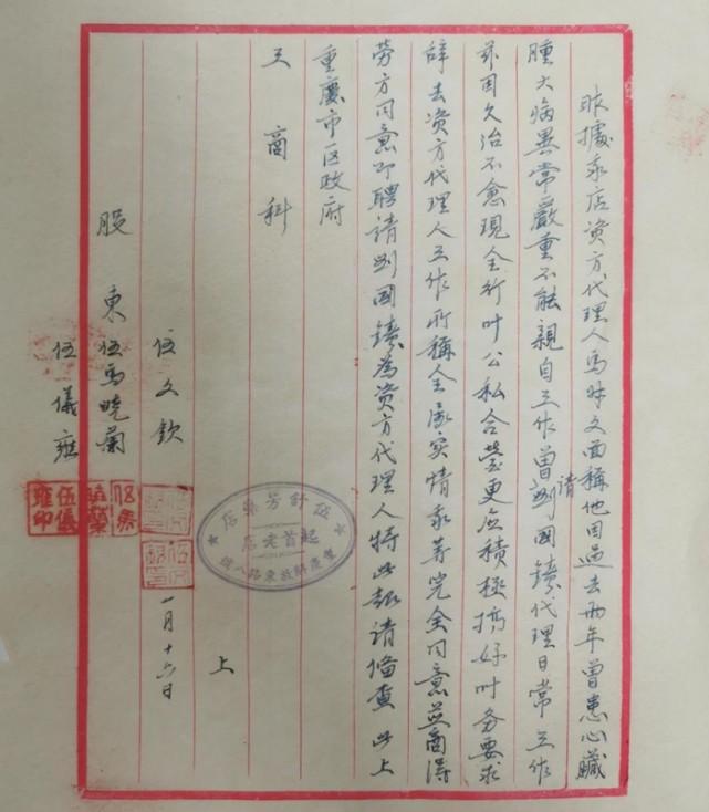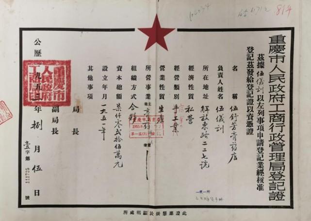 伍舒芳工商登记档案,现分别保存于重庆市档案馆、渝中区档案馆