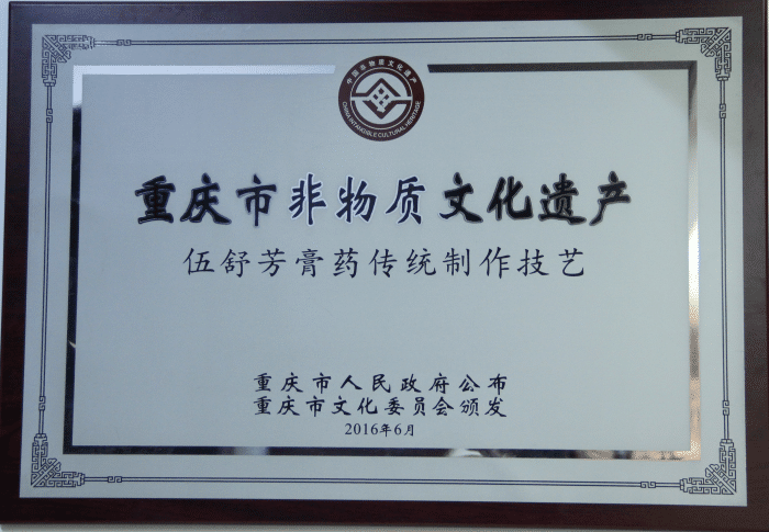 伍儒第十二世孙伍宏宪秉性聪颖,厚德勤学,年少时已为太学士,后游历全国,潜心钻研中华医药。康熙三十七年(公元1698年),伍宏宪由南京溯江而上,举家迁往重庆,定居太平门。太平门是古代渝州府及巴县衙门所在地,有善堂一家,长年免费施粥施药,救助穷人,因经济来源不足,善行难以为继。善堂负责人见伍宏宪乃高官之后,家族经济基础雄厚,学识渊博兼有医德仁心,集儒、医、道之大成于一身,遂托其接管善堂。伍宏宪乃广集全国道地药材,博采众长,为我所用,炼制膏、丹、丸、散、液,创制出伍舒芳万应寿世膏、阳和解凝膏、红毛拔毒膏、文王种子膏、伍氏金创散等传世珍品。因用药珍稀精良、配方独特、工序繁杂,疗效奇佳,世人争相上门索取。善堂难以应对,被迫改免费施救为半价收费,后逐步过渡到收取全价。由此,伍宏宪将善堂更名为“伍舒芳香室”。