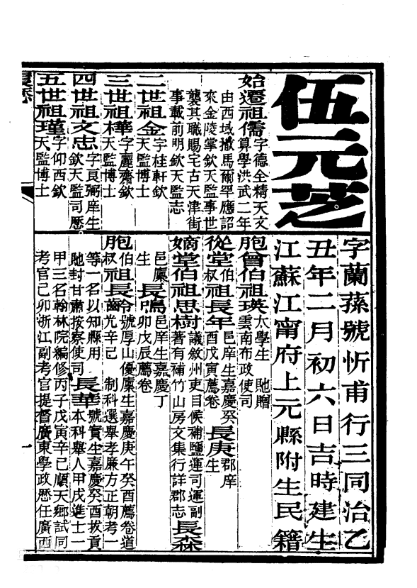 (光绪壬辰科殿试登进士、内阁中书主事、浙江武备学堂首任总办伍元芝家谱)
