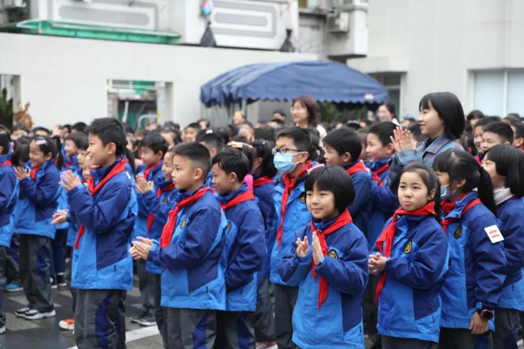 先是由九位教师组成的鼓乐队, 9位老师身着庄严黑搭配靓丽红围巾,激情奏响新年新乐章;随后,校长、老师们亲手将印有“中国美术学院附属小学”logo的特制文件袋逐一送到每个孩子的手中。