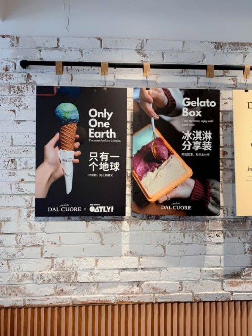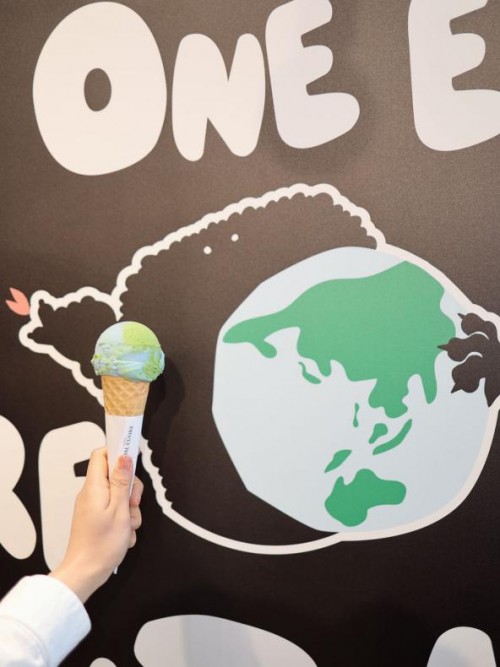 走进店内,随处可见的环保元素,让这家意式手工冰淇淋店显得更加与众不同。店铺门口的创意回收箱、墙面上的“Only One Earth”宣传标语和特别的小怪兽装饰,让人们惊喜地发现了燕麦地球冰淇淋背后的品牌——OATLY噢麦力。希望通过美食传达可持续发展这个共同理念,促进了OATLY这一植物蛋白领先者与这家冰淇淋店的合作。