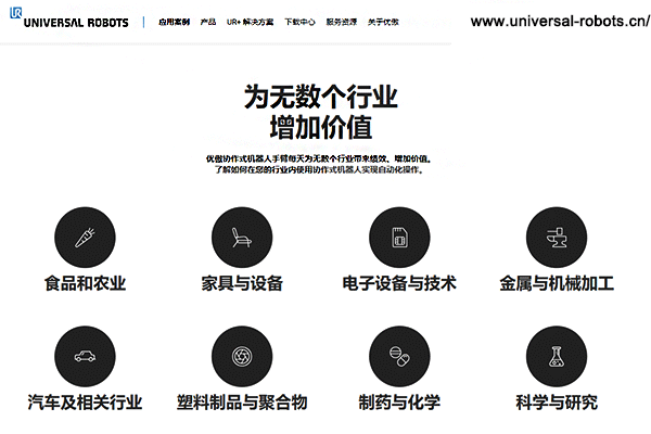 优傲Universal Robots机器人公司主要构建为工业、农业、食品、金属机械加工等各个行业创造产值绩效、增加价值的用于协作环境的协作机器人。优傲目前主要生产URe型号的协作式工业机器人,它“不需要专业知识或专业知识”,没有任何经验的任何人都可以操作。