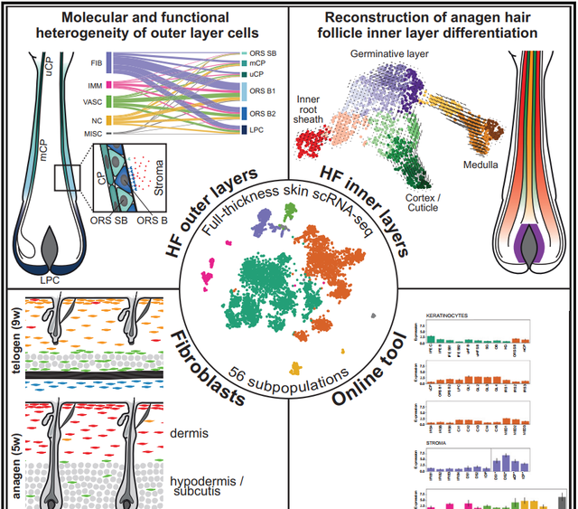2.制定了毛囊静息期、生长期,全层皮肤的细胞组成全景图;