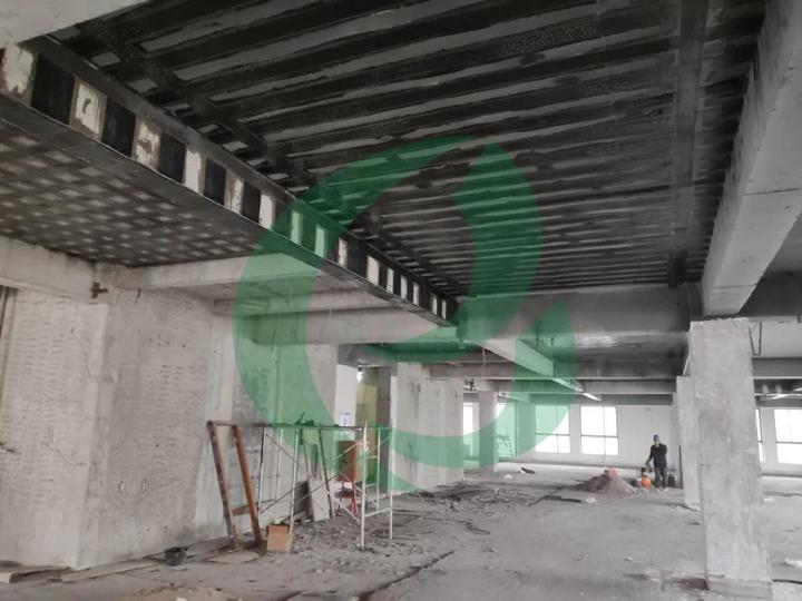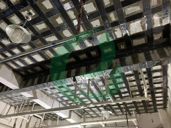 此房建项目是通过碳纤维布加固法来提高梁的承载力,而U形箍的设置是必不可少的一环,它对粘接在梁上的碳布进行了锚固,可以有效地防止碳布发生剥离,实现梁和碳布共同受力,从而有效地保证加固效果。