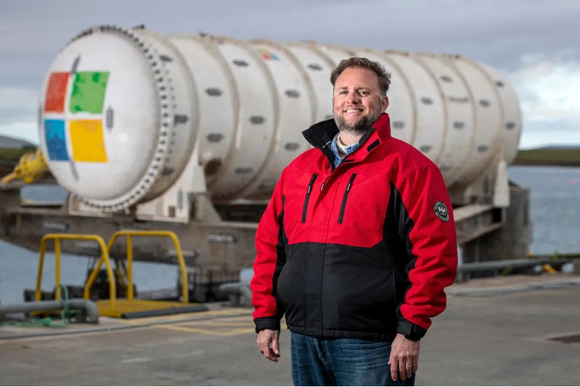 微软研究部门的高级研发工程师Mike Shepperd在水下数据中心前