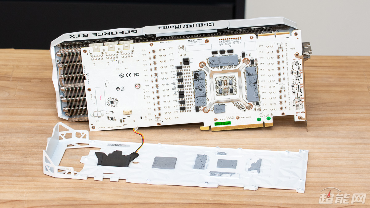 值得注意的是,显卡的散热器与背板都有通过导热贴为显存以及供电元件进行散热,然而其使用的导热贴虽然有很好的导热效率,但是在“可重复使用”这点上却有些力不从心,因为这些导热贴实在太容易损坏了,几乎不可能在保持完整的状态下从PCB上取出。因此拆解显卡这样的事情就留给我们做吧,各位玩家还是不要自行尝试了。